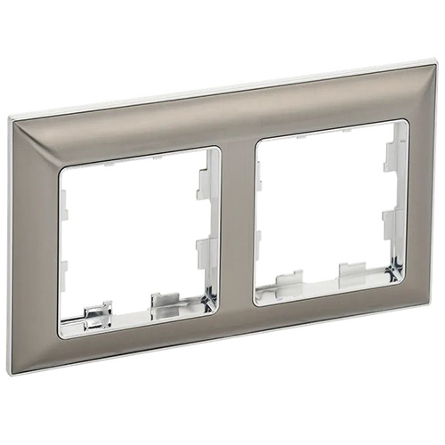 Рамка двухпостовая IEK РУ-2-Бр Brite (металл), хром / никель