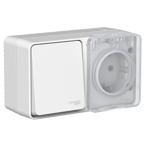 | Тип изделия | блок: выключатель 1-полюсный на 1 направление + розетка силовая (штепсельная) с заземляющим контактом и защитными шторками |