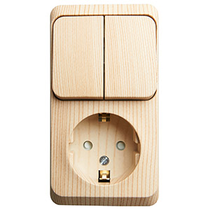 Блок Schneider Electric ВPA16-202D "Этюд" (2-клавишный выключатель + розетка с заземлением, с защитными шторками) открытой установки, сосна