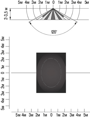 - Наибольшую чувствительность датчик движения имеет, когда движущийся объект перемещается перпендикулярно лучам зоны обнаружения.