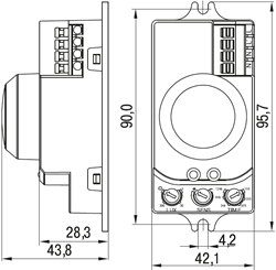 - Возможность незаметного монтажа датчика - под стеклом светильника, натяжным или подвесным потолком и т.д.