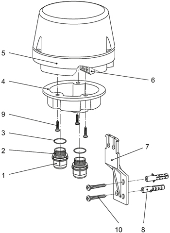 - Внутри корпуса находится основание с электронной платой и защитный пластиковый кожух, встроенный фотоэлемент.
