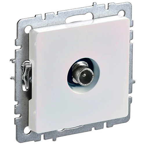 Розетка телевизионная проходная IEK серии электроустановочных изделий Brite для скрытой установки внутри помещений.