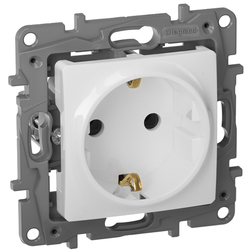 Розетка одноместная Legrand Etika 672222 (16 А, IP20) скрытой установки, с заземлением и защитными шторками, белый