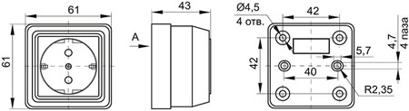 | Тип изделия | розетка силовая с заземляющим контактом, с защитными шторками |