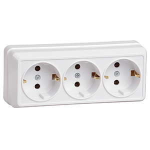 Розетка трехместная РС23-3-ОБ "Октава" IEK (16 А, IP20) открытой установки, с заземлением, белый