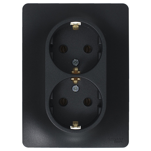 Розетка двухместная Systeme Electric GSL000724 Glossa (16 А) с заземлением, в сборе, антрацит