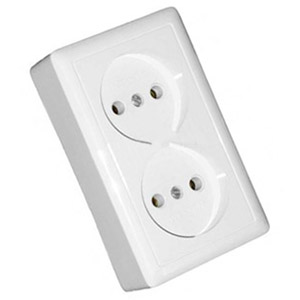 Розетка открытой установки двухместная без заземляющих контактов серии "Хит" электроустановочных изделий Schneider Electric предназначена для присоединения бытовых электроприборов к однофазной цепи переменного тока.