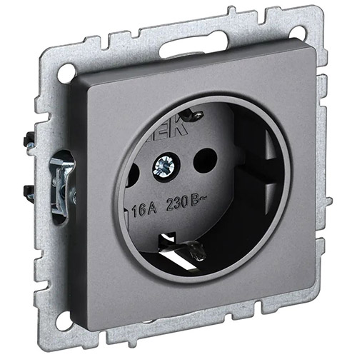 Розетка одноместная IEK РС14-1-0-БрС Brite (16 А, IP20) скрытой установки, с заземлением и защитными шторками, сталь
