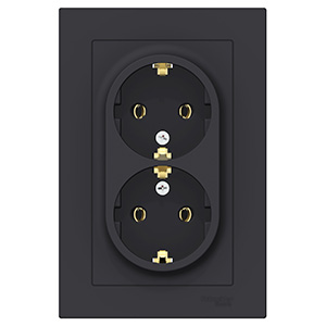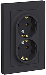 Розетка двухместная Schneider Electric ATN001024 AtlasDesign (16 А) скрытой установки, с заземлением, карбон