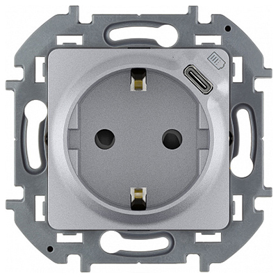 Розетка одноместная Legrand 673772 Inspiria (16 А, IP20) скрытой установки, с заземлением и защитными шторками, со встроенным USB, алюминий