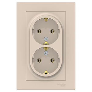 Розетка двухместная Schneider Electric ATN000224 AtlasDesign (16 А) скрытой установки, с заземлением, бежевый
