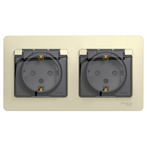 Розетка двухместная Schneider Electric GSL000247 Glossa (16 А, IP44, в сборе) с заземлением и защитными шторками, с крышками, бежевый
