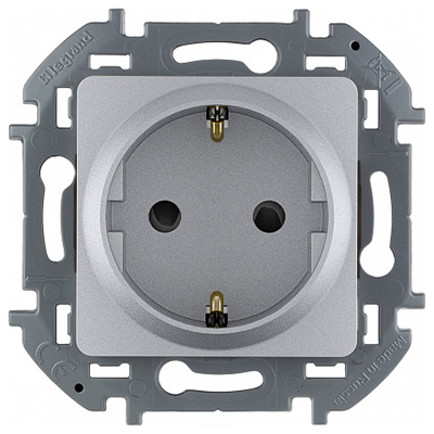 Розетка одноместная Legrand 673732 Inspiria (16 А, IP20) скрытой установки, с заземлением и защитными шторками, алюминий