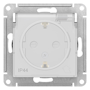 Розетка одноместная Schneider Electric ATN440146 AtlasDesign Aqua (16 А, IP44) скрытой установки, с заземлением, с защитными шторками, с крышкой, белый