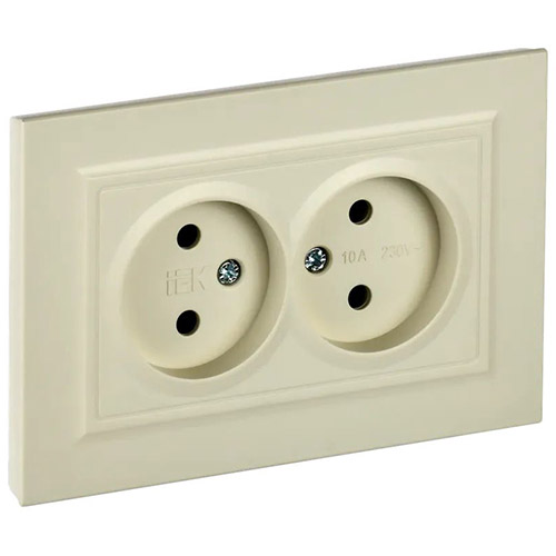 Розетка двухместная IEK РС12-2-БрКр Brite (10 А, IP20) скрытой установки, в сборе, бежевый