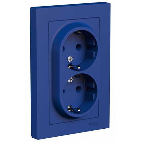 Розетка двухместная Systeme Electric ATN001124 AtlasDesign (16 А) скрытой установки, с заземлением, в сборе, аквамарин