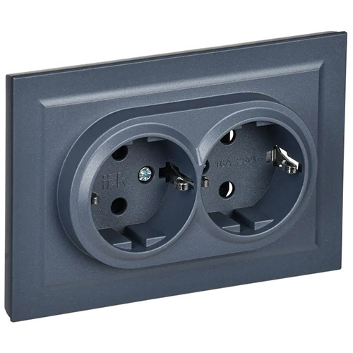 Розетка двухместная IEK РС12-3-БрМ Brite (16 А, IP20) скрытой установки, с заземлением, в сборе, маренго