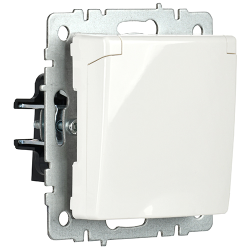 Розетка одноместная IEK РСбш10-3-БрБ Brite (16 А, IP20) скрытой установки, с заземлением и защитными шторками, с крышкой, белый