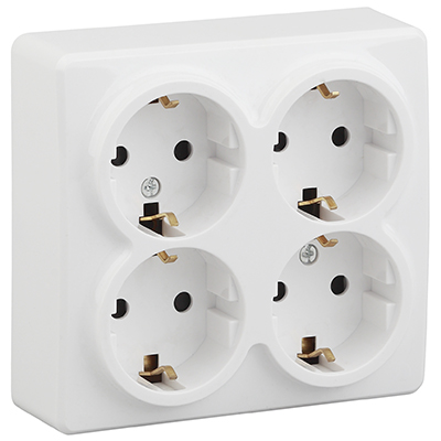 Розетка четырехместная "Эра" 11-2211-01 "Эксперт" (16 АХ, 250 В, IP20) открытой установки, с заземлением, с защитными шторками, белый