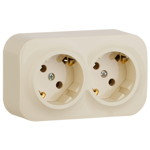 Розетка двухместная Legrand 782263 Quteo (16 А, IP20) открытой установки, с заземлением, слоновая кость
