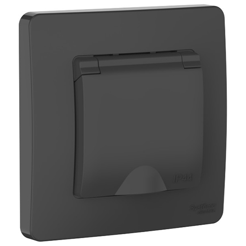 Розетка одноместная Systeme Electric BLNRS441116 Blanca (16 А, IP44) с заземлением и защитными шторками, с крышкой, скрытой установки, антрацит