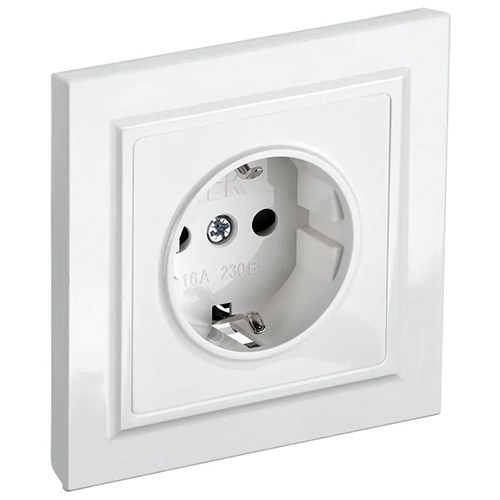 Розетка одноместная IEK РСP14-1-0-БрБ Brite (16 А, IP20) скрытой установки, с заземлением и защитными шторками, в сборе, белый