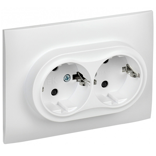 Розетка двухместная IEK SK-R07W Skandy (16 А, IP20) скрытой установки, с заземлением и защитными шторками, в сборе, арктический белый