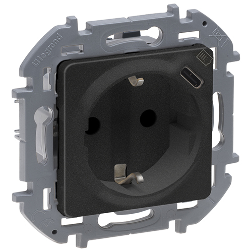 Комбинированная розетка с зарядным устройством USB типа С серии Inspiria предназначена для одновременного электропитания бытовых потребителей и зарядки мобильного устройства.