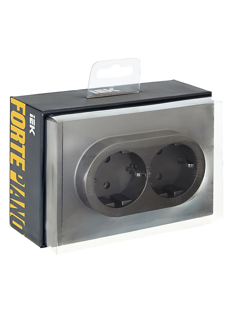 Розетка двухместная IEK FP524 Forte&Piano (16 А, IP20, безвинтовые зажимы) скрытой установки, с заземлением, сталь