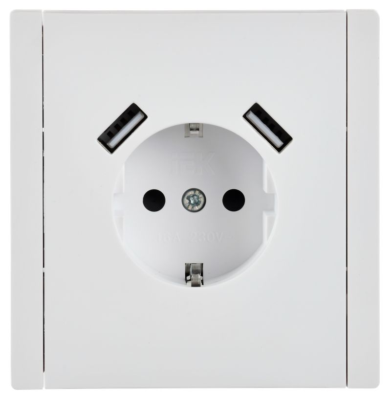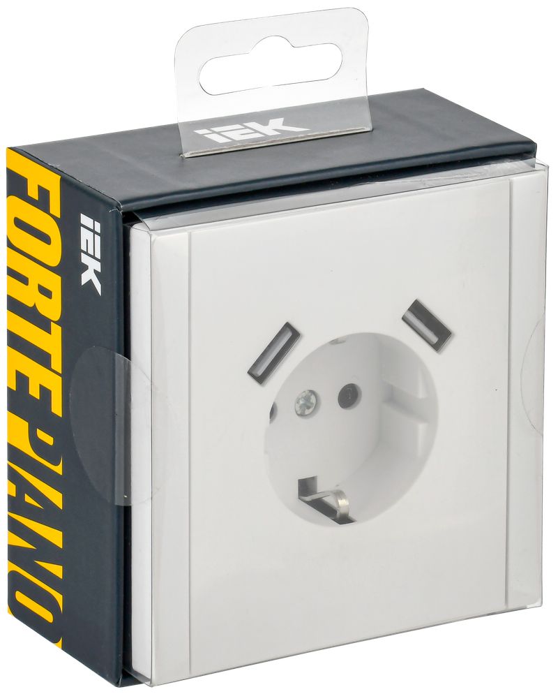 Розетка одноместная IEK FP245 Forte&Piano (16 А, IP20) скрытой установки, с заземлением и шторками, с разъемами USB A+A (3,1 А), белый