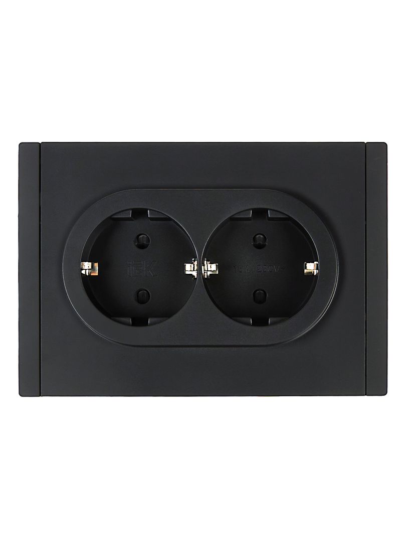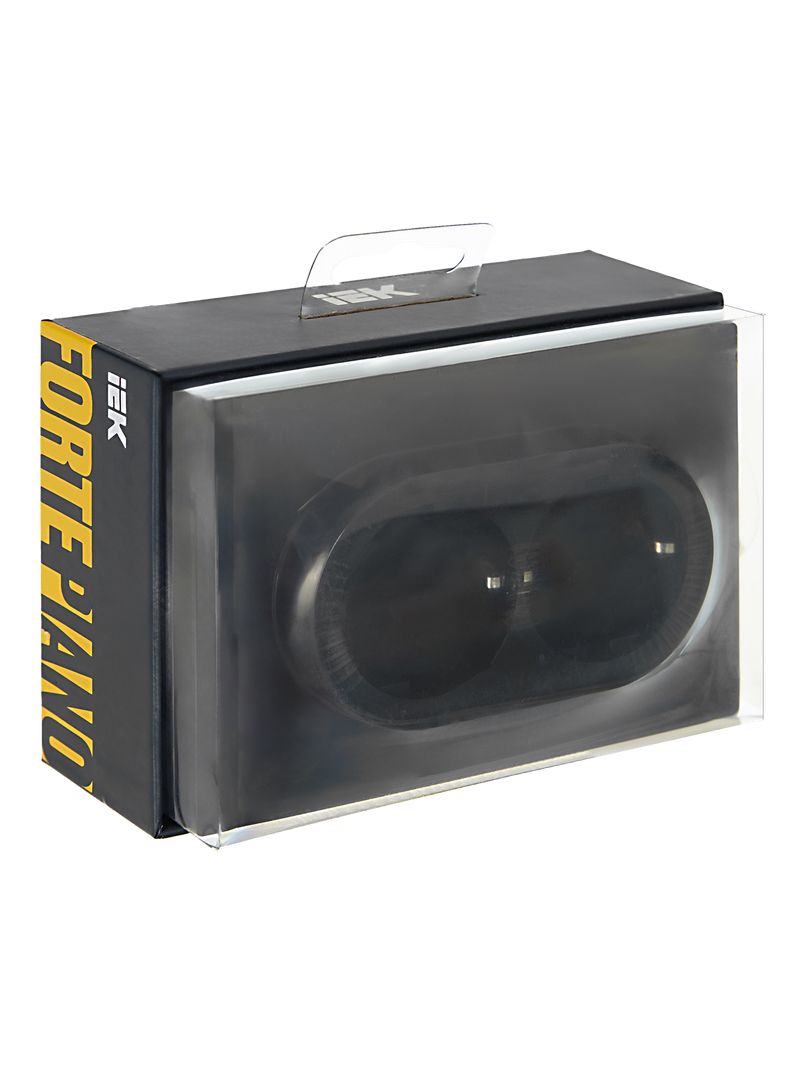 Розетка двухместная IEK FP123 Forte&Piano (16 А, IP20, безвинтовые зажимы) скрытой установки, с заземлением и защитными шторками, черный