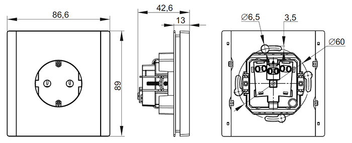 | Тип изделия | розетка с заземляющим контактом, без защитных шторок |
