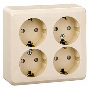 Розетка четырехместная Schneider Electric PA16-208K "Этюд" (16 А, IP20) открытой установки, с заземлением и защитными шторками, кремовый