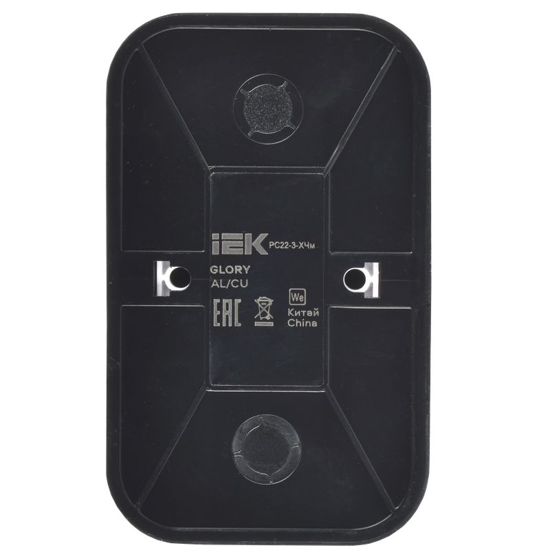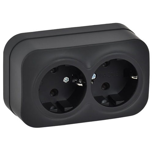Розетка двухместная IEK РС22-3-ХЧм Glory (16 А, IP20) открытой установки, с заземлением, черный матовый