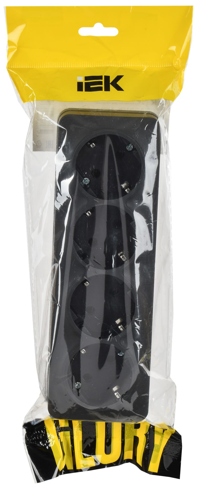 Розетка четырехместная IEK РС24-3-ХЧм Glory (16 А, IP20) открытой установки, с заземлением, черный матовый