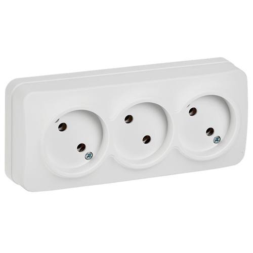 Розетка трехместная IEK РС23-2-ХБм Glory (10 А, IP20) открытой установки, белый матовый