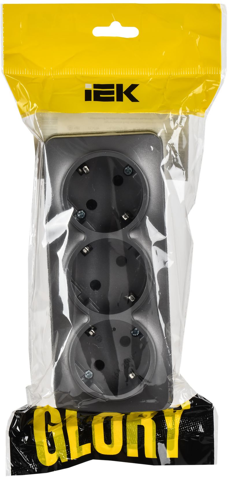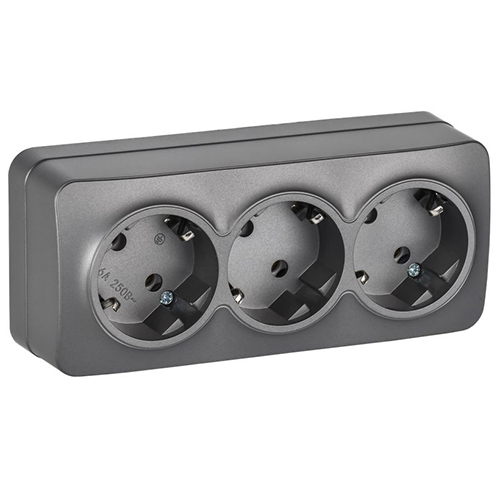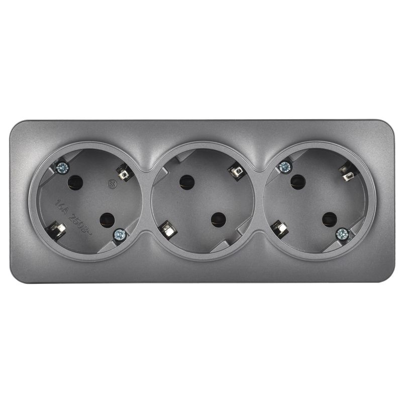 Розетка трехместная IEK РС23-3-ХСм Glory (16 А, IP20) открытой установки, с заземлением, сталь матовый