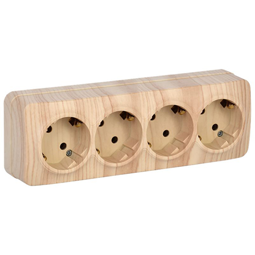 Розетка четырехместная IEK РС24-3-ХС Glory (16 А, IP20) открытой установки, с заземлением, сосна
