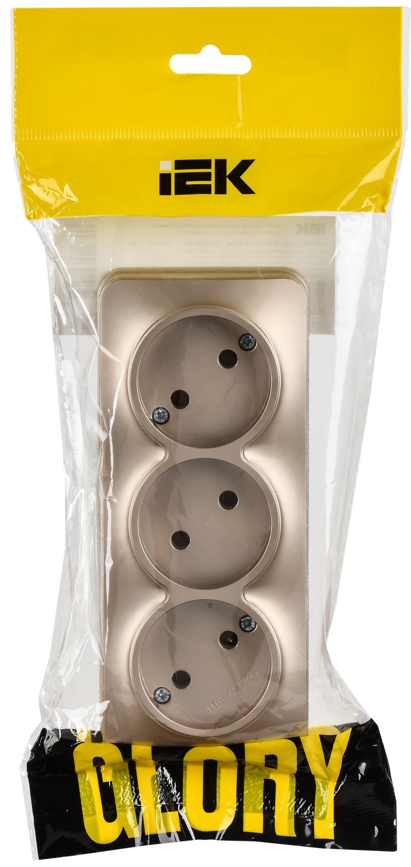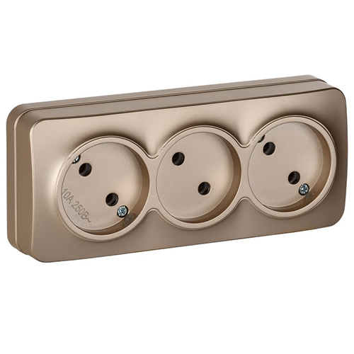 Розетка трехместная IEK РС23-2-ХШм Glory (10 А, IP20) открытой установки, шампань матовый