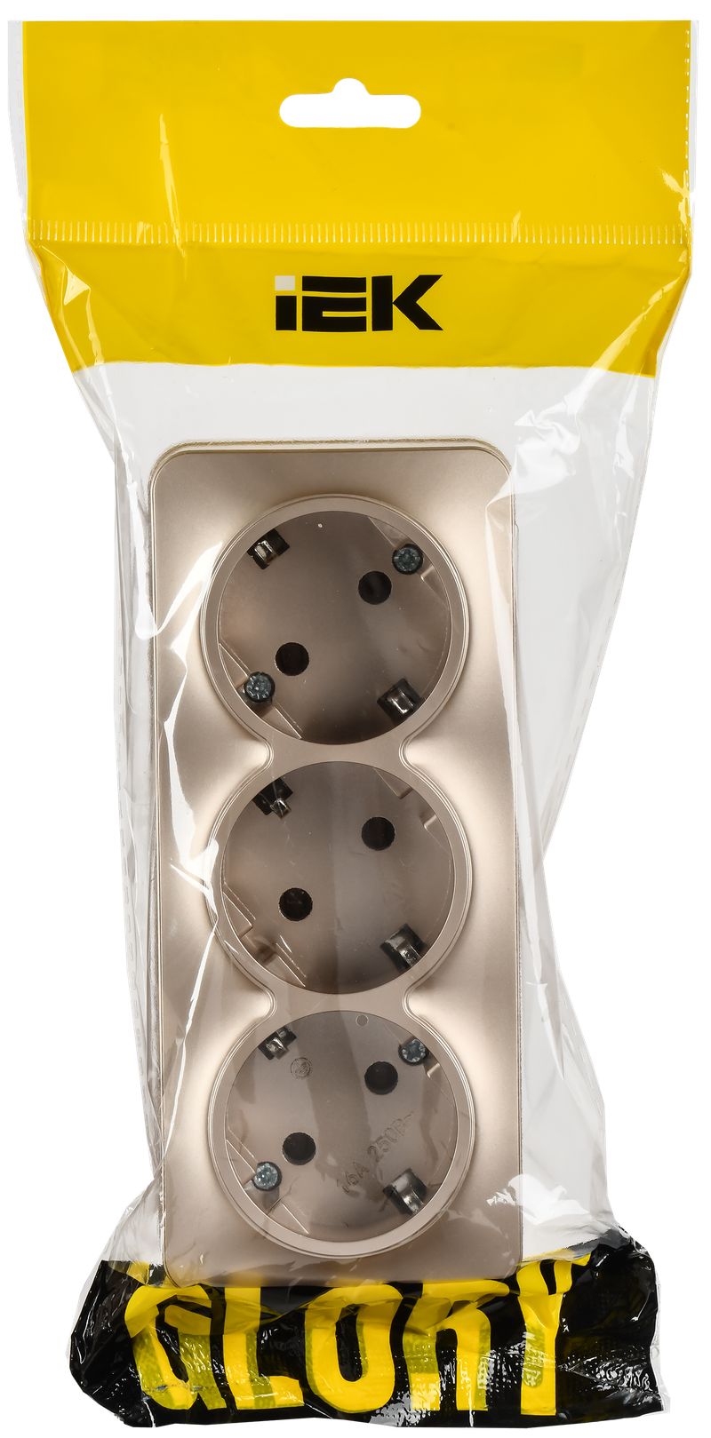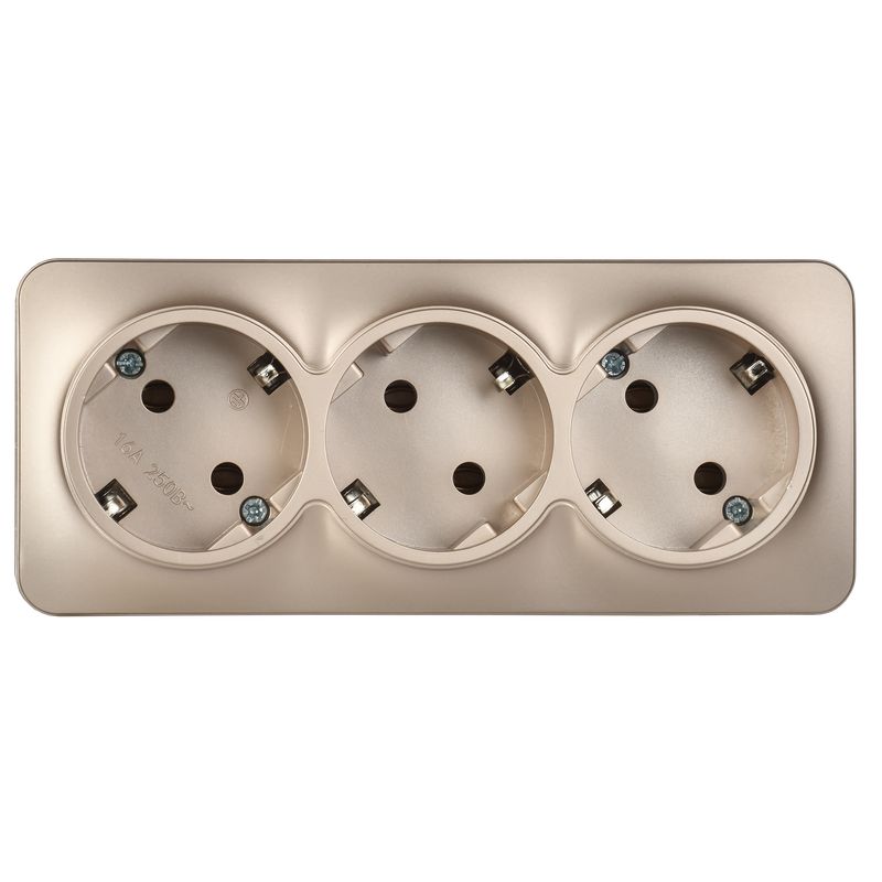 Розетка трехместная IEK РС23-3-ХШм Glory (16 А, IP20) открытой установки, с заземлением, шампань матовый