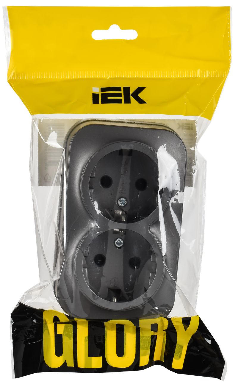 Розетка двухместная IEK РС22-3-ХСм Glory (16 А, IP20) открытой установки, с заземлением, сталь матовый