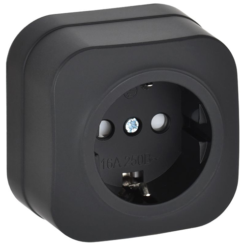 Розетка одноместная IEK РСш20-3-ХЧм Glory (16 А, IP20) открытой установки, с заземлением и защитными шторками, черный матовый