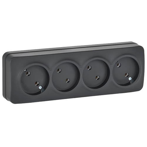 Розетка четырехместная IEK РС24-2-ХЧм Glory (10 А, IP20) открытой установки, черный матовый