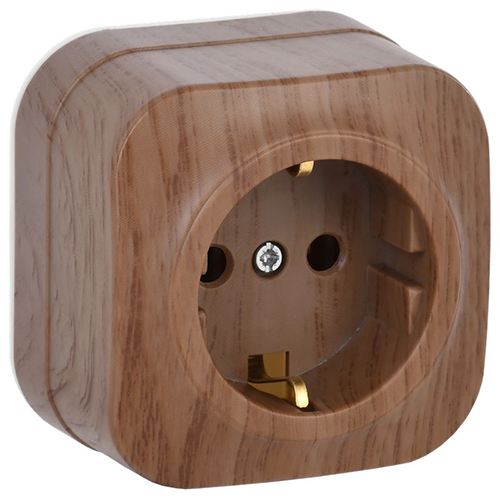 Розетка одноместная IEK РС20-3-ХД Glory (16 А, IP20) открытой установки, с заземлением, дуб