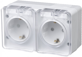 Розетка двухместная Schneider Electric ATN540126 AtlasDesign Profi54 (16 А, IP54) открытой установки, с заземлением, шторками и защитными крышками, белый