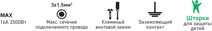 | Максимальное сечение подключаемых проводников | 3 х 1,5 кв.мм |