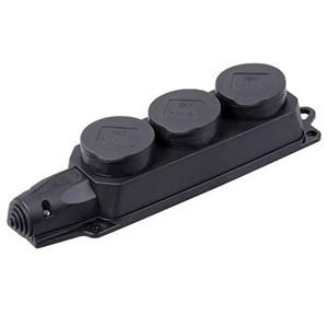 Колодка трехместная каучуковая РБ33-1-Ом IEK PKR61-016-2-K02 "Омега" (16 А, IP44) с заземлением, с защитными крышками