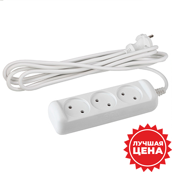 Удлинитель трехместный 1,5 м "Эра" UХ(6)-3-1,5m (6 А, 250 В, ПВС 2 х 0,75 кв.мм), белый