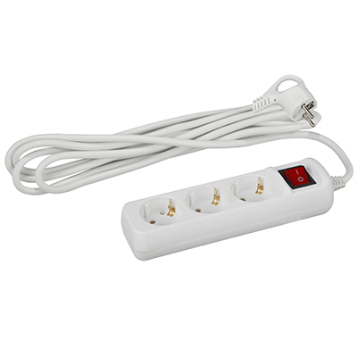 Удлинитель трехместный 5 м "Эра" U-3es-5m-3x1 (16 А, 250 В, ПВС 3 х 1 кв.мм) с заземлением, с выключателем, белый